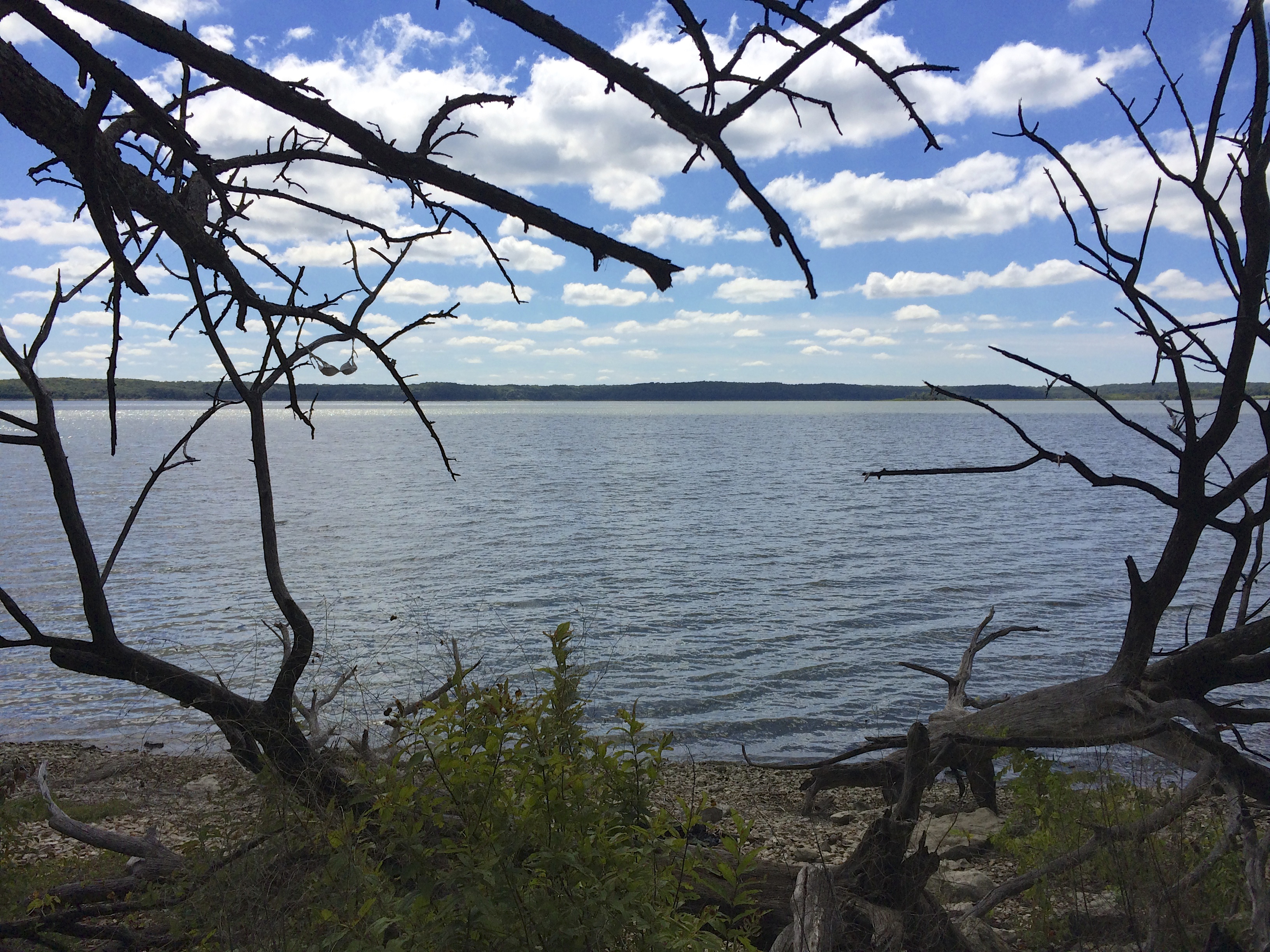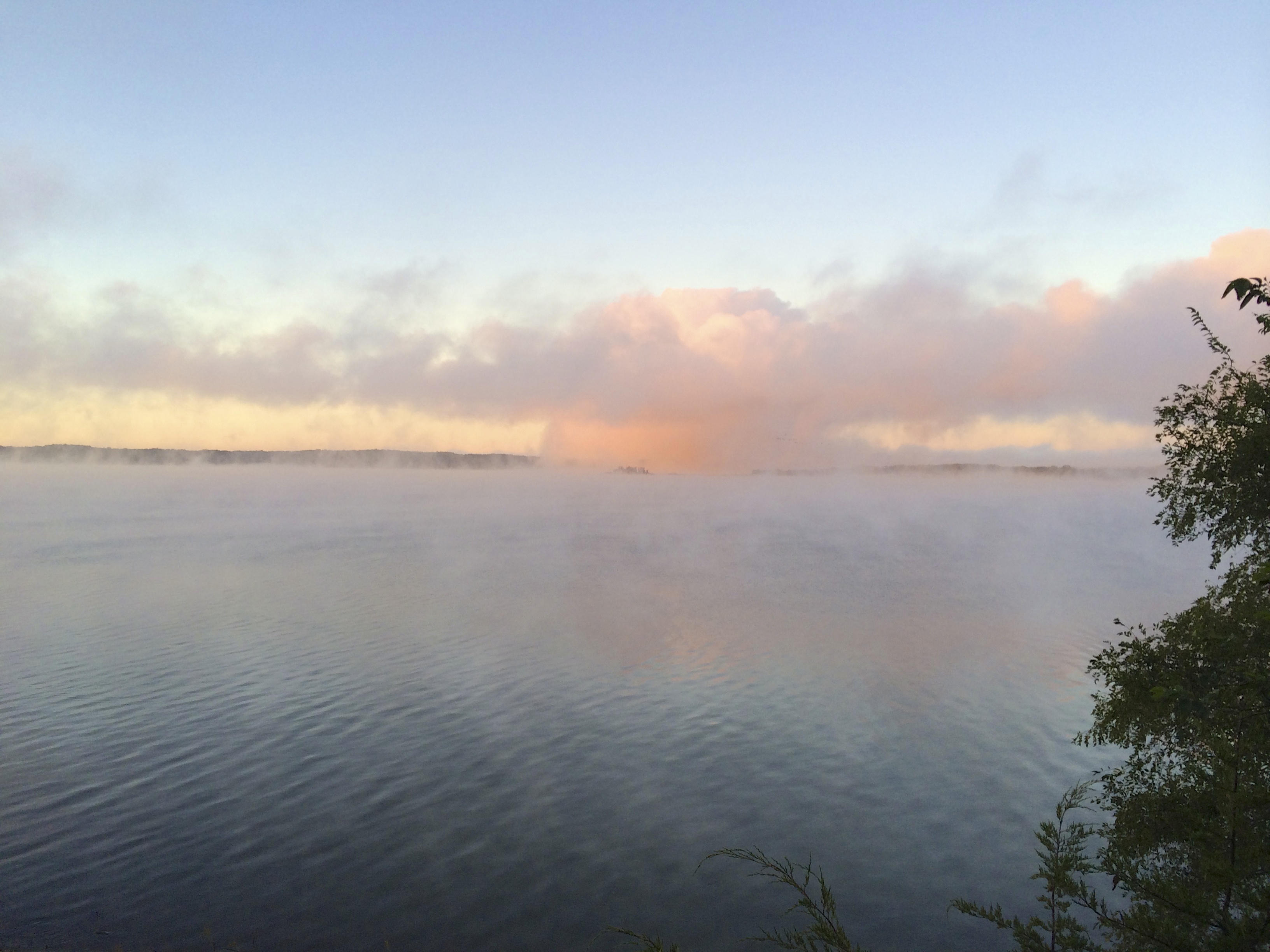 We headed uphill on a 1+ mile out and back right away–it was impossible to see what the mile looked like between total darkness and the inability of dozens of headlamps to pierce the six foot tall prairie grass only inches away from our single-track trail. Chatter aplenty I kept my head down for the first time questioning my decision. Once clear of the prairie we entered the absolute darkness of the single-track through the woods, only catching brief glimpses of the sky over the next 10 miles. In some spaces we should have seen the sky, we saw only headlamps bouncing off thick fog rising above the lake mixed with the increasing glow of the sunrise.